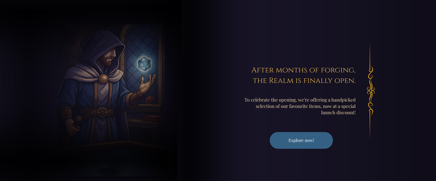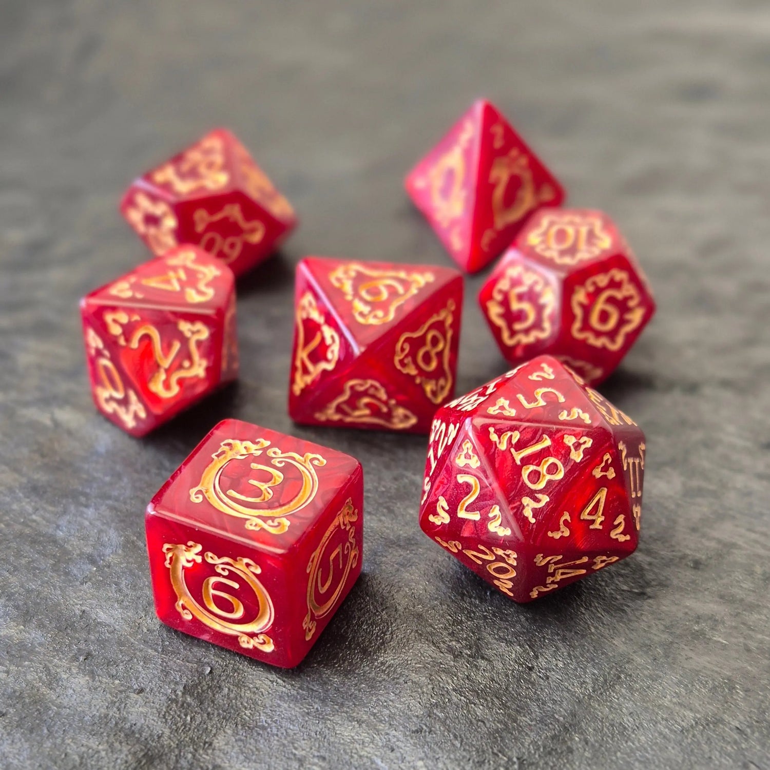 Explore our collection of premium dice sets, including acrylic dice, metal dice, sharp edge dice, polymer dice, and stunning liquid core dice. Whether you're a player or Dungeon Master, our dice are made to elevate every tabletop RPG like Dungeons & Dragons, Pathfinder or any other fantasy world.